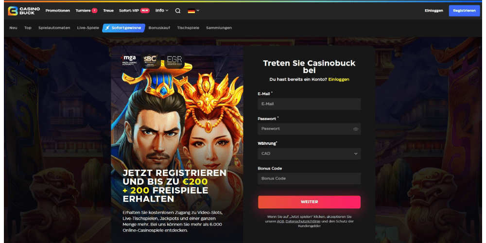 Casinobuck bietet Hunderte von Spielen an und macht deutlich, warum es so schnell so viele Spieler angezogen hat. Da das Casino unter der Kontrolle der maltesischen Glücksspielbehörde steht, bietet es eine insgesamt zuverlässige und sichere Atmosphäre. Die Website des Casinos ist in Bezug auf die Grafiken wirklich einfach und einfach zu bedienen. Sie werden es einfach finden, auf der Website zu navigieren und Ihre Lieblingsspiele auszuwählen, nachdem Sie sich angemeldet und eingeloggt haben. Außerdem können Sie nach der Anmeldung den Casinobuck-Willkommensbonus aktivieren.
