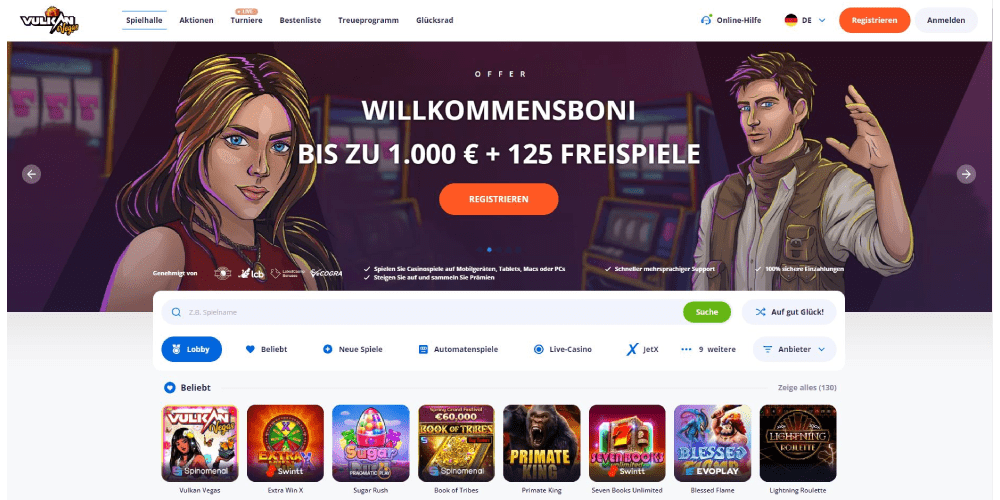 Vulkan Vegas scheint ein gut geführtes Casino zu sein, das viel zu bieten hat. Die Plattform erscheint auf den ersten Blick sehr einfach, aber sie geben sich wirklich alle Mühe, einige wirklich erstaunliche Grafiken für ihre Anzeigen, Boni und für die gesamte Website im Allgemeinen zu erstellen. Diese Bilder, die als verbindende visuelle Elemente der Plattform dienen, sind sehr schön.