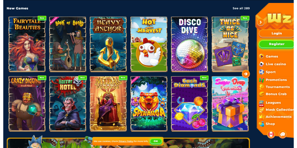 Rund 1500 Spiele, die von den besten Softwareentwicklern erstellt wurden, sind auf Wazamba verfügbar. Es gibt Optionen für Spielautomaten, Tischspiele, Live-Casinospiele und Sofortgewinne. Führende Spielehersteller wie BF Games, Booongo, Evolution Gaming, Iron Dog, NetEnt, Play'n GO, Playson, Pocket Games, Red Tiger und Yggdrasil unterstützen alle Spiele, die jetzt verfügbar sind. Für eine größere Vielfalt werden der Spielesammlung weitere Spiele hinzugefügt, wenn sie veröffentlicht werden.