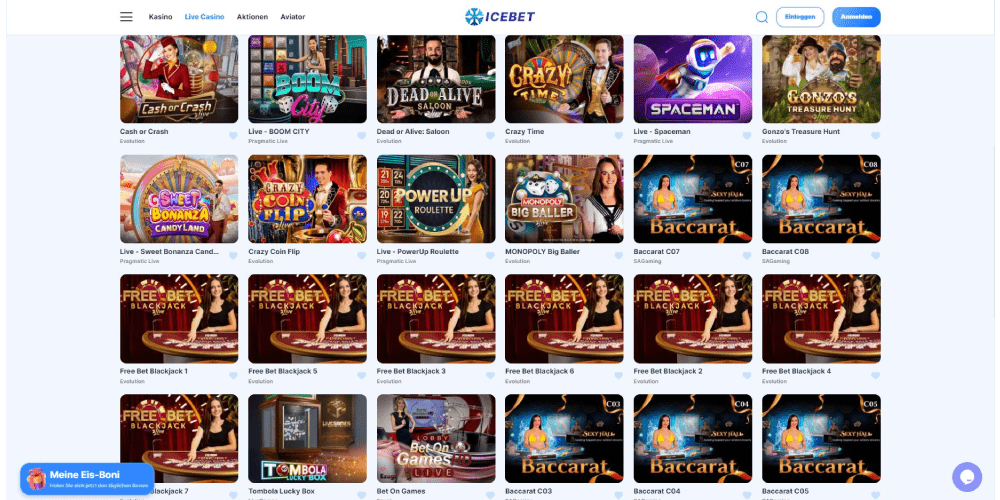 Bei IceBet Casino haben Sie 5000 verschiedene Titel zur Auswahl. Dazu gehören alle Arten von Spielautomaten, verschiedene Variationen von Poker, Roulette, Blackjack und Baccarat und viele andere. Sie können sich leicht entscheiden, auf welches Spiel Sie eine Echtgeldwette platzieren möchten, da die meisten von ihnen eine Demoversion unterstützen.