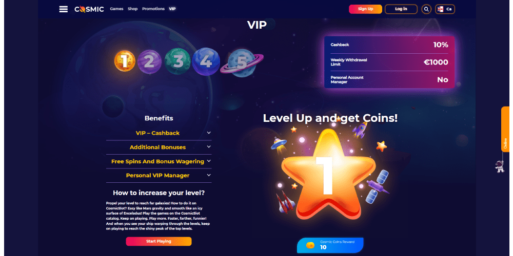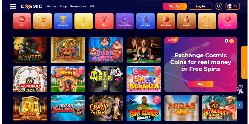 CosmicSlot-niminen nettikasino lanseerattiin vuonna 2020 ja tuli nopeasti tunnetuksi peliensä poikkeuksellisesta laadusta ja laajasta pelivalikoimastaan. Ne, jotka nauttivat useiden kasinobonusten hyödyntämisestä, ovat erittäin tyytyväisiä CosmicSlotin tässä suhteessa tarjoamaan valikoimaan. Tarjouksia on tarjolla sekä uusille pelaajille että niille, joilla on jo tili. Tämän kasinon pelivalikoima saa paljon huomiota ja huolenpitoa. Tämän seurauksena, kun navigoit sivuston "Pelit"-alueelle, löydät huomattavan joukon tunnetuimpia ohjelmistokehittäjiä ja heidän tuottamiaan pelejä.