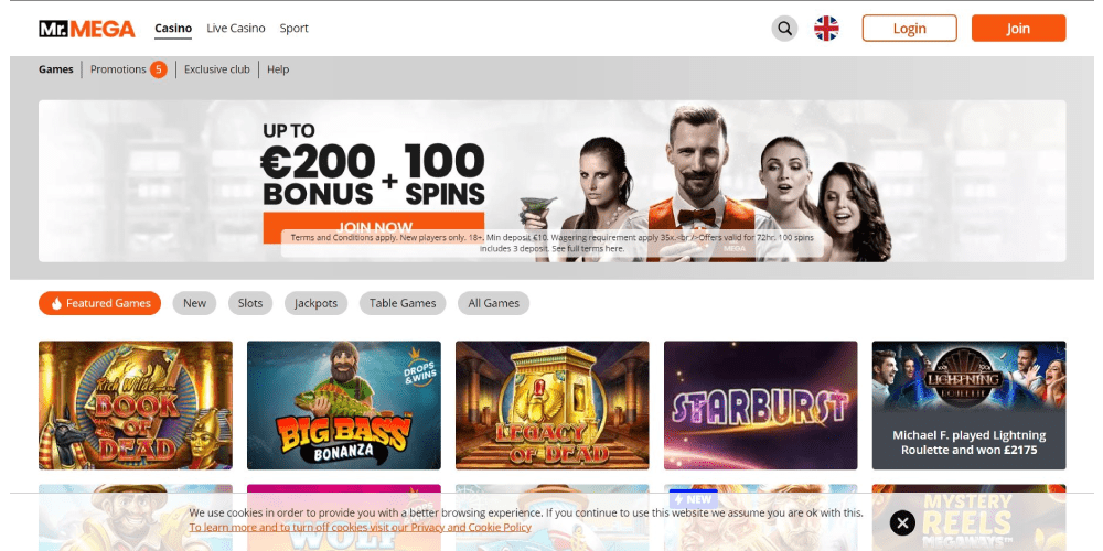 You may play your favorite slots and casino games in the safest setting when you visit Mr. Mega. The well-known online casino operator Aspire Global International Ltd., which has more than ten years of expertise offering dependable and safe gaming to millions of clients worldwide, is the owner of Mr. Mega.