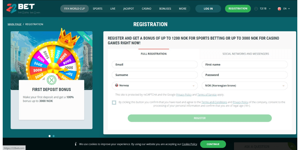 Ja. All spillerdata beskyttes av 22Bet ved bruk av industristandard sikkerhet og kryptering.
