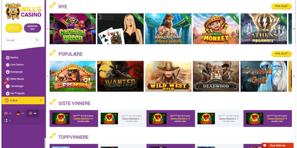 Hvilke språk er Will's Casino-nettstedet tilgjengelig på?