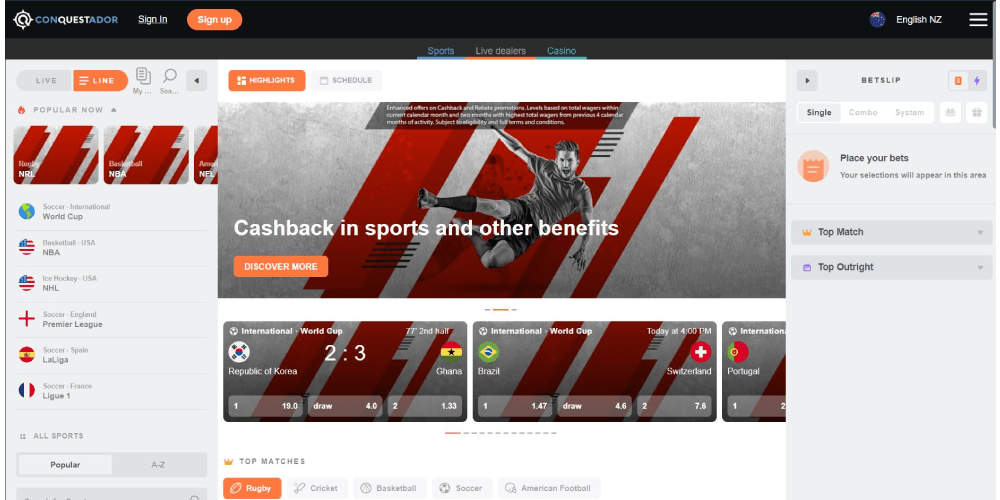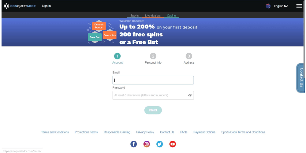 Conquestador accepts all of the various payment methods, and the minimum withdrawal amount is NZ$20.