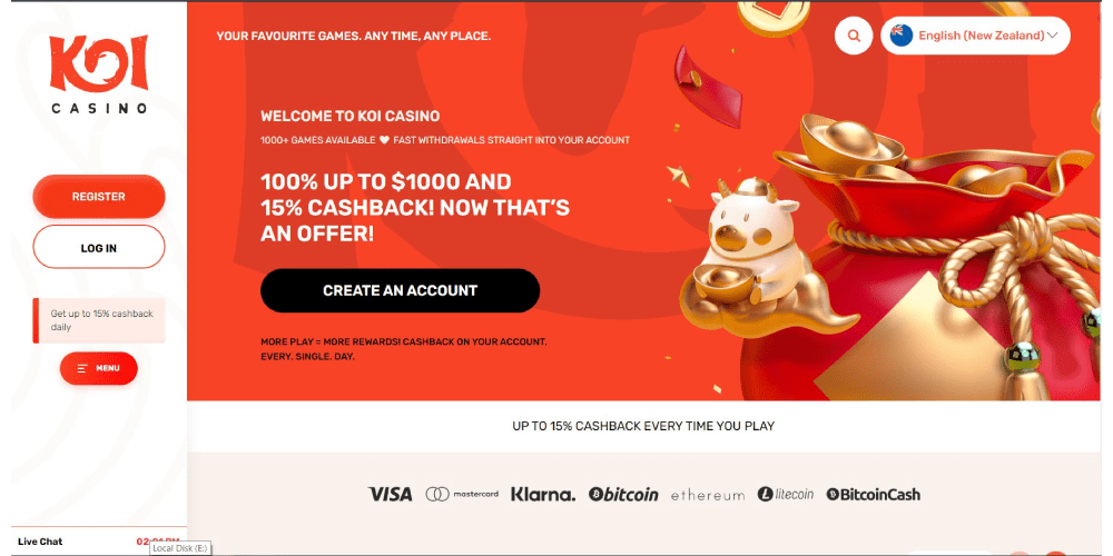 The website Koi Casino is a recent creation of Njord Ventures BV. This online casino, which holds a Curacao licence, provides a large selection of both virtual and live games. The website looks like the stunning koi fish it is named after, with its sleek orange and white design. In fact, the casino's emblem resembles one of these fish if you look closely, which furthers the theme.